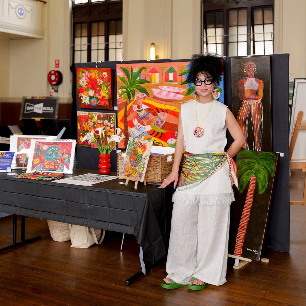 Shaped by her journeys across South America, the Middle East, and Australia, she creates compositions that evoke a sense of celebration, daily rituals, and abundance. Her visual language draws from the festive colours of the Caribbean, the ancestral resonance of African rituality, and the expressive spontaneity of popular culture. Through an intuitive blend of abstraction and figuration, Dora transforms personal recollections into visual narratives that feel both intimate and universal.